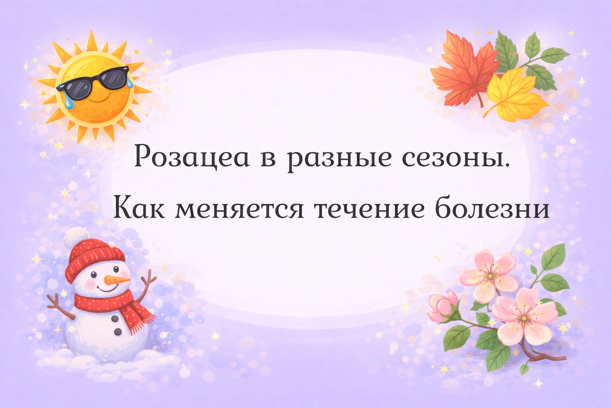 Если у вас розацеа, то смена времен года — это не только повод сменить гардероб, но и время пересмотреть уход за кожей. Потому что розацеа — та еще метеозависимая барышня. Давайте разбираться, чего ждать от каждого времени года и как к этому подготовиться! Казалось бы, зимой солнца меньше, жары нет, значит, должно быть легче? Как бы не так. Холод и ветер — главные зимние провокаторы. Мороз сужает, а потом резко расширяет сосуды, ветер раздражает кожу, и вот вы уже выглядите как Дед Мороз, только без бороды. Отопление в помещениях высушивает воздух и кожу вместе с ним. Кожа становится стянутой, шелушится, защитный барьер слабеет, и розацеа только рада этому воспользоваться. Горячие напитки — зимой мы пьем их чаще. Глинтвейн на новогодней ярмарке, горячий чай после прогулки, кофе чтобы согреться. Все это триггеры, которые зимой особенно коварны. Что делать: Защищайте лицо! Шарф, прикрывающий щеки, плотный крем за полчаса до выхода на улицу. Дома используйте увлажнитель воздуха. Ох уж, э
