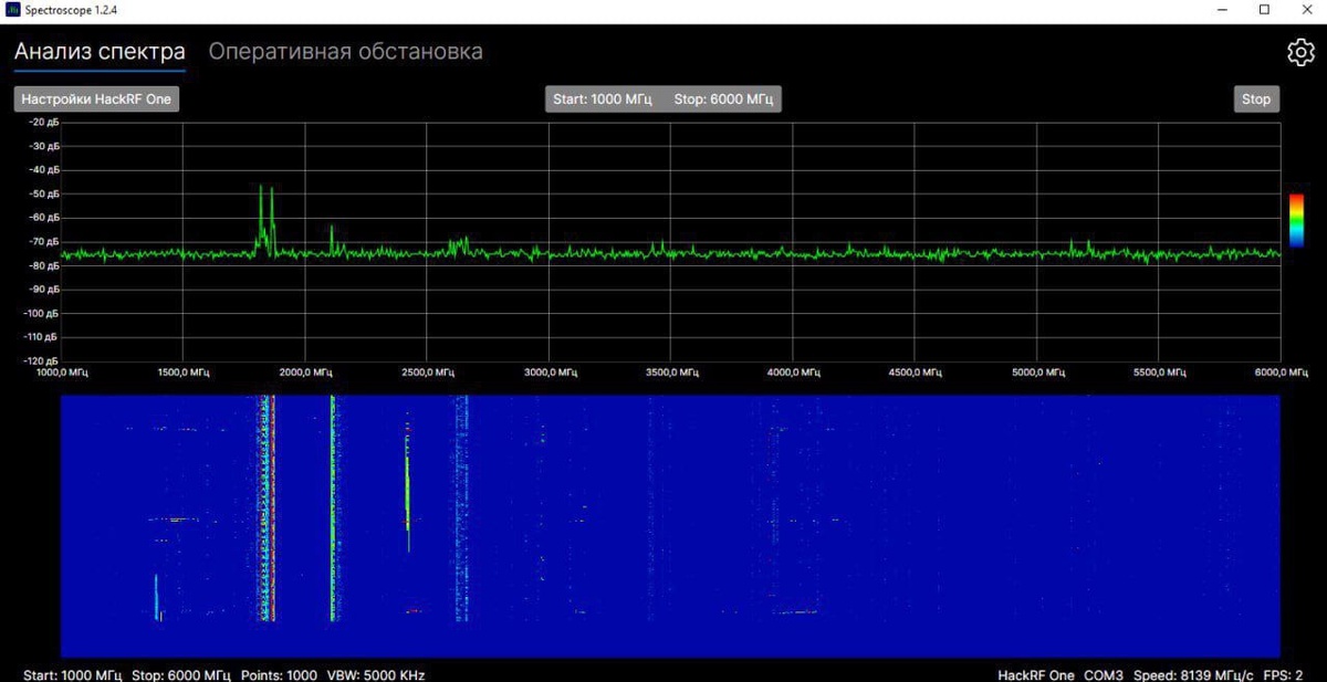 ПО «Спектроскоп», созданное ОКБ «Дронокскоп», предназначено для интеграции различных модулей радиоэлектронной разведки (РЭР), радиоэлектронной борьбы (РЭБ) и распределённых сенсоров. По сообщениям, по своей концепции архитектура решения близка к интегрированной системе защиты НАТО, известной как «стена дронов». В основе «стены дронов» — единая информационная платформа и сеть разнесённых датчиков: радиоканальных, оптических, акустических, а также специализированных РЛС для выявления БПЛА. Сбор данных с разнородных сенсоров позволяет заранее получать информацию о возможной атаке беспилотников. Отечественная разработка также объединяет данные с разных датчиков, обеспечивает обнаружение БПЛА по нескольким физическим признакам и позволяет в автоматизированном режиме управлять средствами подавления. Кроме того, «Спектроскоп» даёт возможность выявлять и анализировать сигналы дронов и других источников радиоизлучения на доступном и распространённом оборудовании в зоне СВО: измерять параметр