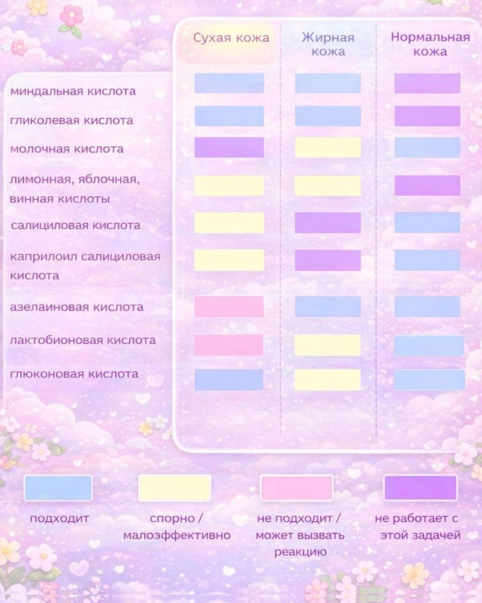 Желание нанести всё и сразу, главный ваш враг. Некоторые активы вступают не в синергию, а в конфликт Топ 3 опасных сочетания 1. Ретинол + AHA или BHA Два сильных эксфолианта вместе разрушают барьер, вызывают покраснение и шелушение Что делать? Использовать в разные дни или разделять утро и вечер 2. Витамин C в форме L-аскорбиновой кислоты + AHA или BHA Резкое падение pH может привести к раздражению и воспалению Что делать? Витамин C утром, кислоты вечером 3. Салициловая кислота + бензоилпероксид Оба сильно сушат кожу, вместе легко доводят её до микротрещин Что делать? BHA для профилактики, бензоилпероксид точечно и отдельно Спорный дуэт: ниацинамид и витамин C. Современные формулы позволяют им работать вместе. Но при высоких концентрациях возможна временная реакция из-за разного pH. Если кожа чувствительная, лучше разделять Что сочетается отлично? • Кислоты + гиалуроновая кислота • Ретинол + ниацинамид • Витамин C + витамин E + феруловая кислота Огромный список сочетаний разных