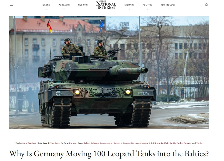 😡The National Interest: "Германия размещает около 5000 военнослужащих Бундесвера вместе с 105 танками Leopard в Литве - это первая