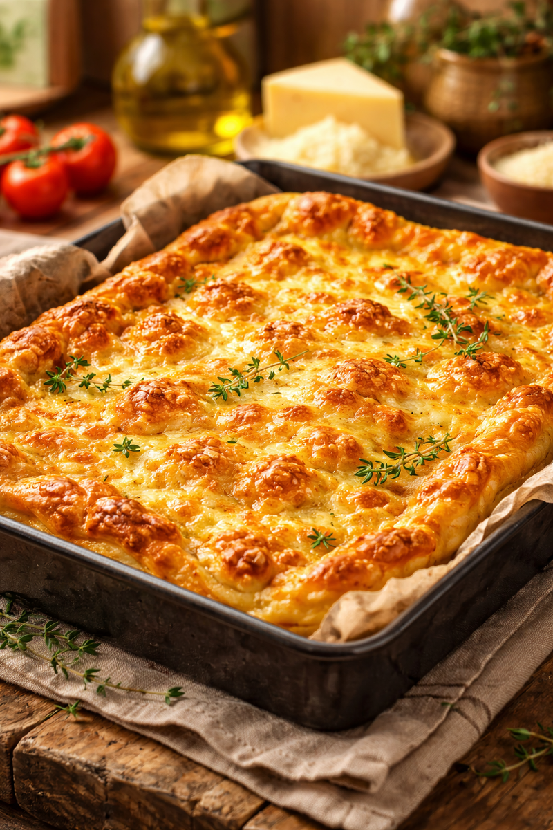 - Далее краями теста укрываем наш пирог, смазываем растопленным сливочным маслом и при желании присыпаем кунжутом для большей хрустинки). Накрываем форму фольгой и отправляем в разогретую духовку на 35-40 минут. За 5-10 минут до готовности снимаем фольгу и даем пирогу подрумянится).