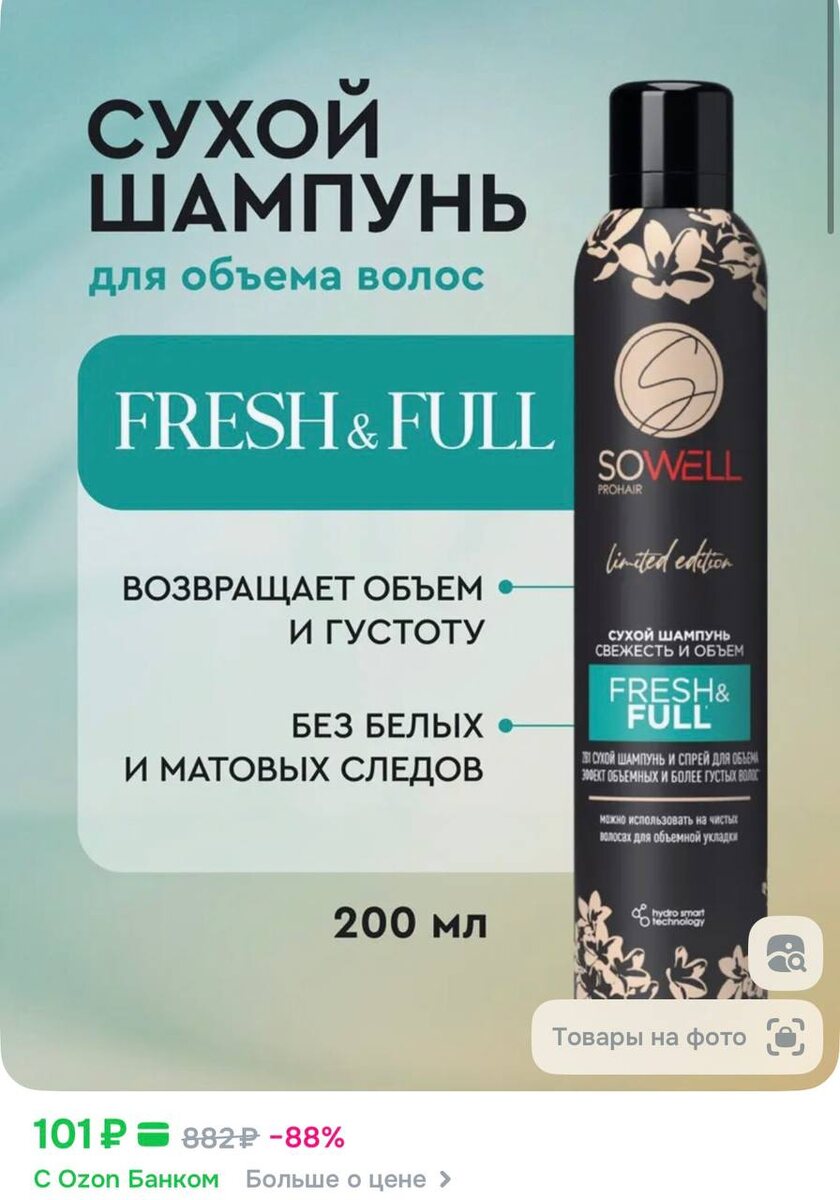 😀😀😀Сухой шампунь для объема волос спрей SoWell Fresh & Full 200 мл