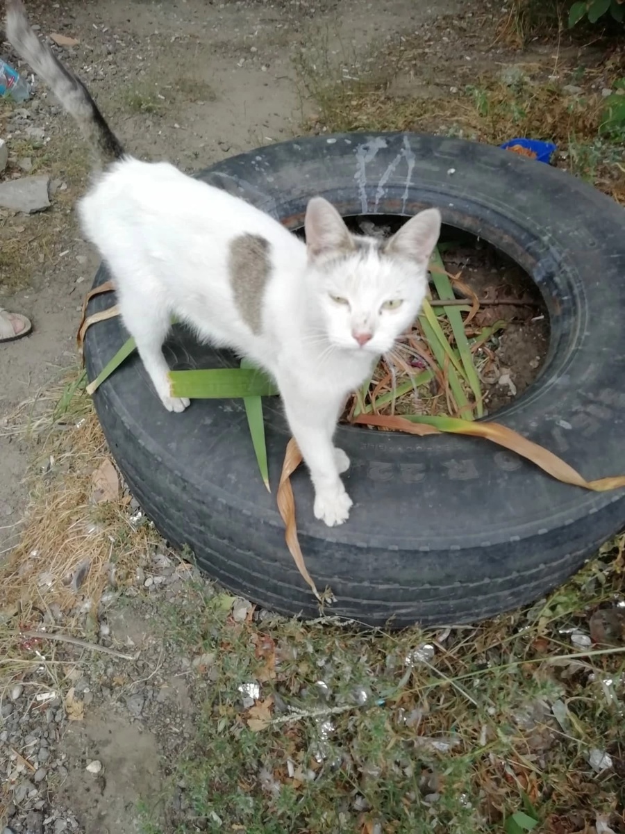 Жила-была домашняя кошка Маруся, которая в один "прекрасный" день стала не нужна своим хозяевам. Люди отправили бывшую любимицу на улицу. Маруся была не стерилизована, поэтому, вскоре забеременела. Бывшедомашняя кошка, совершенно не приспособленная к улице, не нашла ничего лучше, как окотиться прямо на голой земле. Она не нашла себе лучшего укрытия, чем автомобильная покрышка, служившая жителям многоквартирного дома клумбой. Маруся - кошечка очень ласковая, она начинала мурлыкать и перебирать лапками, как только человек просто смотрел в ее сторону. Разумеется, выжить на улице семья бы не смогла, несмотря на то, что на дворе было лето. И дело не только в собаках и машинах. Жители двора тоже разделились на два лагеря. Кто-то старался помогать семье, а кто-то обещал из нич то жить. Все как всегда. Передержку найти не удавалось, поэтому, когда посиупило предложение забрать их в офис автосервиса, куратор долго не думала, ведь беда могла произойти в любую секунду. Пушистики переехали. Как то