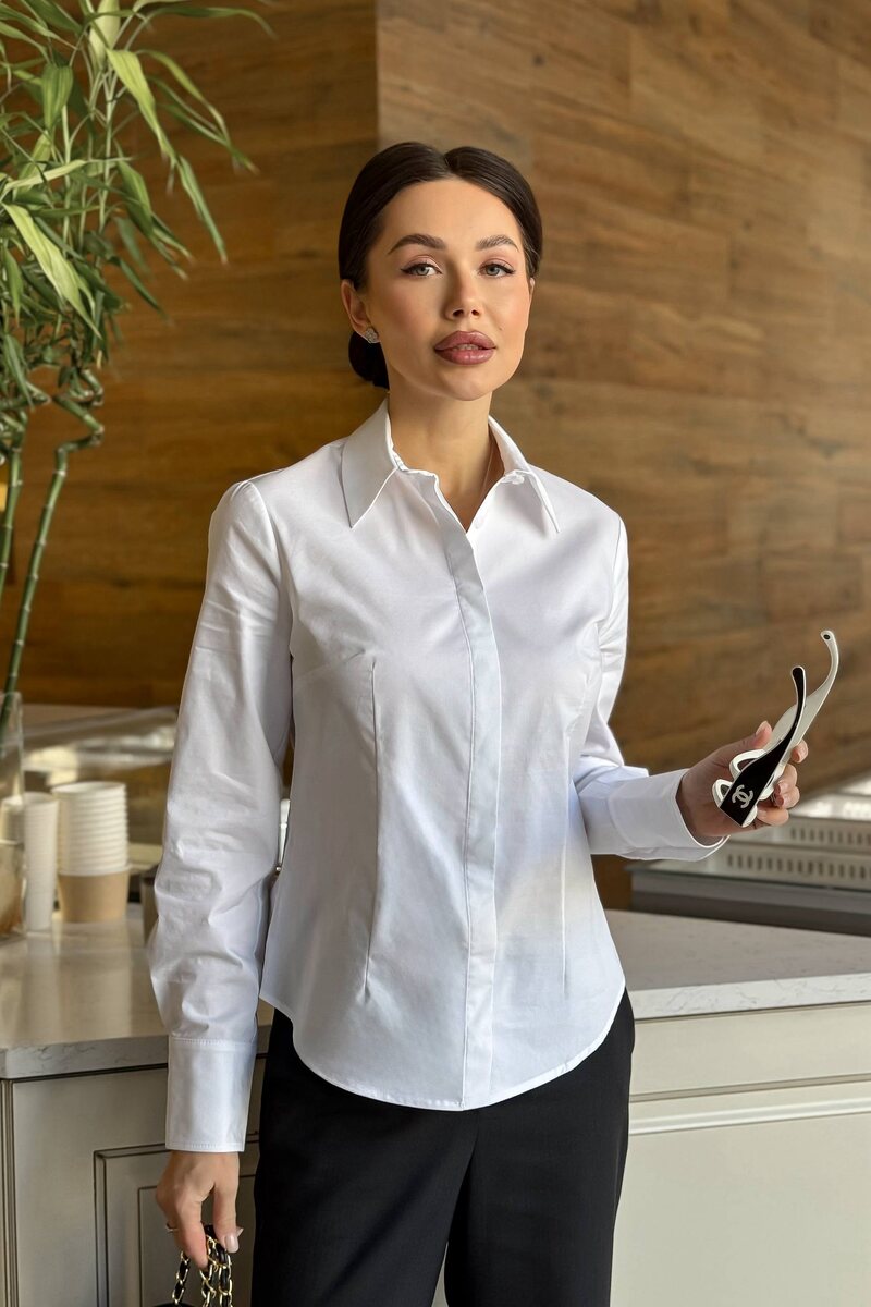 Эта блуза — основа базового гардероба, когда важно выглядеть уверенно: в офисе, на встрече, учёбе или официальном мероприятии