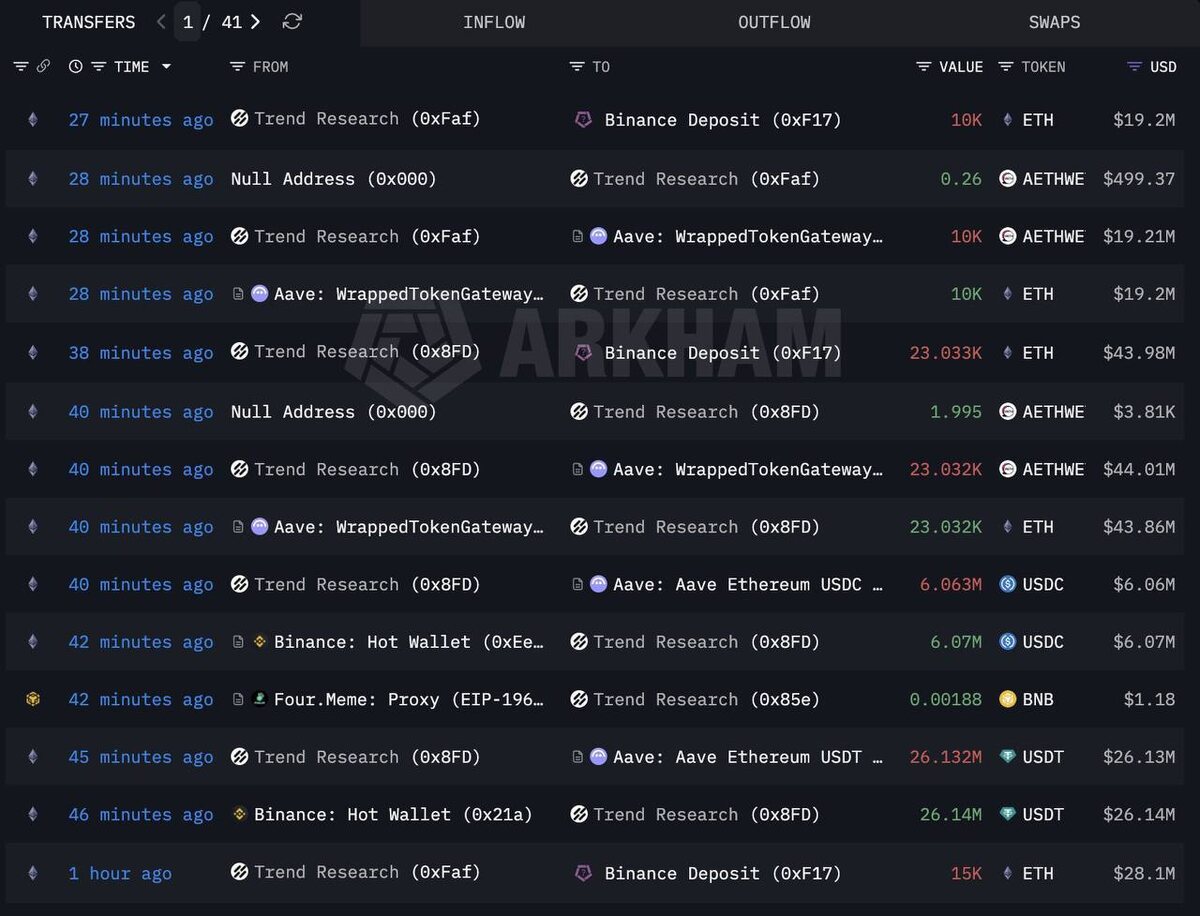 Большинство ищет причины падения рынка в новостях, макроэкономике или «манипуляциях». Но реальная причина глубже. Главное давление на крипторынок создаёт сама структура капитала внутри индустрии. Крипта до сих пор остаётся рынком, где слишком много заёмных денег, коротких стратегий и агрессивной торговли. 🔼Когда рынок растёт - это ускоряет рост. 🔽Когда рынок падает-запускается цепная реакция ликвидаций. Свежий пример. Trend Research всего за 10 часов продала 170 033 ETH примерно на $322,5 млн, чтобы закрыть кредиты. И это только часть позиции. На балансе компании остаётся около 293 121 ETH (~$563 млн). 👀Теперь представьте масштаб. Ethereum всего за 7 дней упал более чем на 40%. ❓И возникает простой вопрос: Сколько ещё компаний сейчас продают активы не потому, что хотят… А потому что обязаны? 💡Именно так формируются резкие обвалы рынка. Не паника в соцсетях. Не новости. А принудительные продажи. ⚙️Механика простая: Цена падает → Маржин-коллы → Компании закрывают позиции → Продажи ус