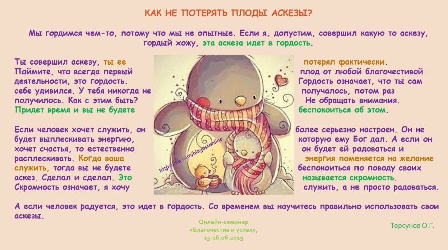 ? Мы гордимся чем-то, потому что мы не опытные. Если я, допустим, совершил какую то аскезу, гордый хожу, эта аскеза идет в гордость. Ты совершил аскезу, ты ее потерял фактически. Поймите, что всегда первый плод от любой благочестивой деятельности, это гордость. Гордость означает, что ты сам себе удивился. У тебя никогда не получалось, потом раз получилось. Как с этим быть? Не обращать внимания. Придет время и вы не будете беспокоиться об этом. Если человек хочет служить, он более серьезно настроен. Он не будет выплескивать энергию, которую ему Бог дал. А если он хочет счастья, то естественно он будет ей радоваться и расплескивать. Когда ваша энергия поменяется на желание служить, тогда вы не будете беспокоиться по поводу своих аскез. Сделал и сделал. Это называется скромность. Скромность означает, я хочу служить, а не просто радоваться. А если человек радуется, это идет в гордость. Со временем вы научитесь правильно использовать свои аскезы.