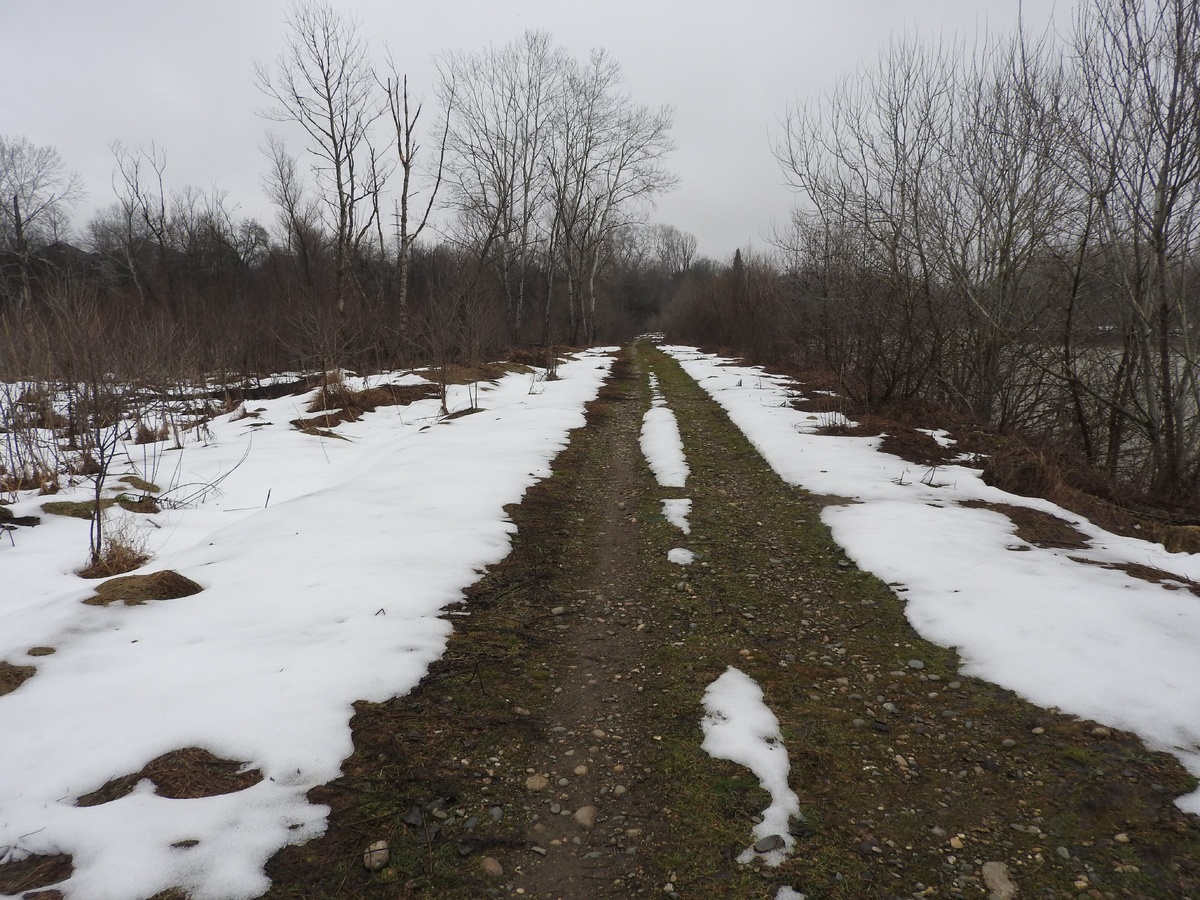 Предпаводковое обследование защитной дамбы обвалования правого берега р. Белая, в районе х. Грозного Майкопского района, Республики Адыгея.