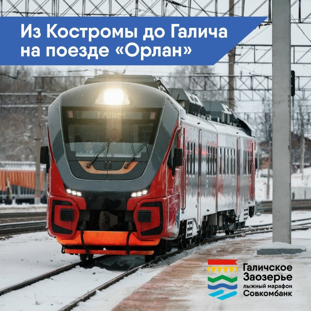 Галичское Заозерье Соревнования пройдут 14 и 15 февраля, стало известно Logos44.ru. В Костромской области 14 и 15 февраля пройдет крупное спортивное событие — лыжный марафон «Галичское Заозерье». Чтобы спортсмены и болельщики смогли добраться к месту проведения, оба дня будут ходить скоростные «Орланы». Установлено следующее расписание: — поезд №7118 Кострома Новая – Галич: отправление в 6:15, прибытие в 8:15; — поезд №7117 Галич – Кострома Новая: отправление в 17:30, прибытие в 19:30 14 февраля; — поезд №7117 Галич – Кострома Новая: отправление в 16:30, прибытие в 18:30 15 февраля. Состав следует 2 часа без остановок. Утренние рейсы состыкованы по времени с ночным поездом из Москвы, который прибывает в Кострому в 4:55. Вечерние рейсы состыкованы с «Ласточкой» в Москву. Она отправляется из Костромы в 20:05. Лыжный марафон пройдет в районе деревни Толтуново в Галичском районе. Добраться от ж/д вокзала Галича до стартовой поляны в Толтуново и обратно можно на специальных трансферах.