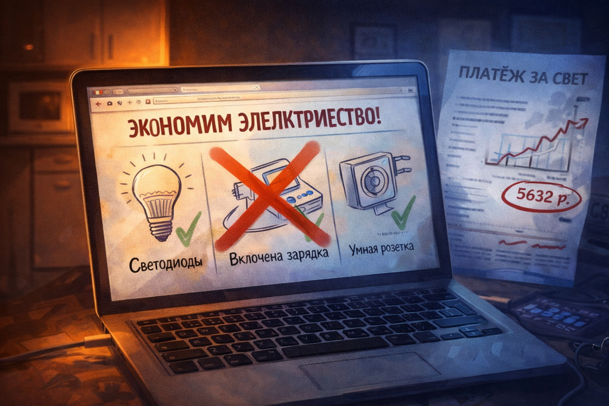 Интернет забит советами по экономии электричества. «Поставьте светодиоды — и счёт уменьшится вдвое», «Отключайте всё из розетки», «Купите умные розетки — и платёжка станет меньше». Люди стараются, делают всё «как написано», а потом открывают квитанцию… и видят те же цифры. Или даже больше. Почему так происходит?