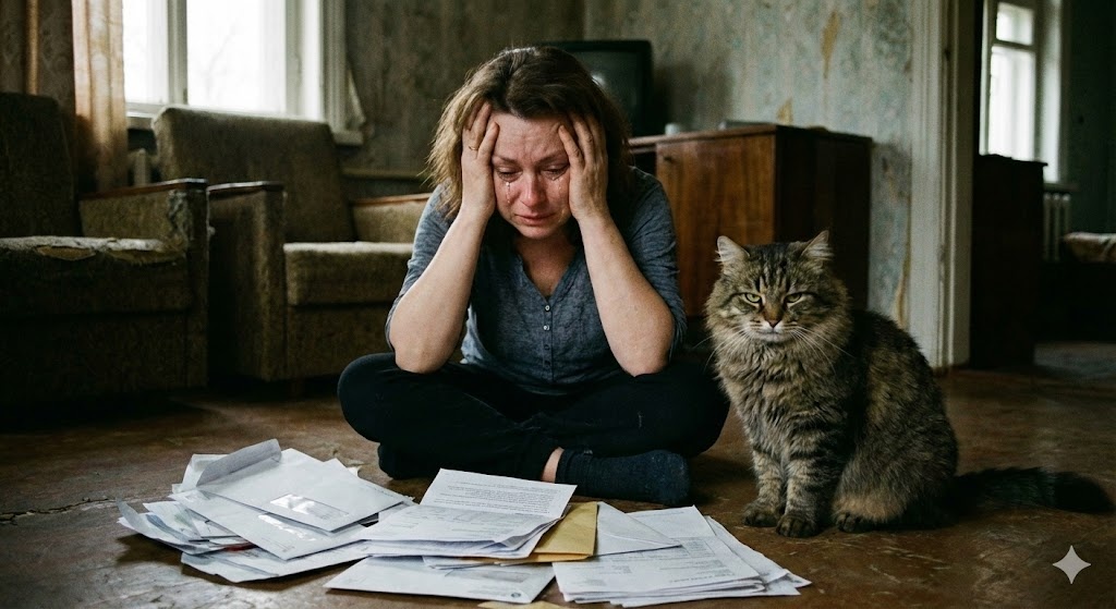 Она сидела на кухне, обхватив голову руками. Перед ней лежал ворох писем с требованиями о погашении.