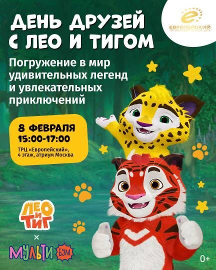 8 февраля с 15:00 до 17:00 | ТРЦ «Европейский», 4 этаж, Атриум: Москва Готовы к новым приключениям? Тому, кто не боится трудностей, Лео и Тиг откроют удивительный мир легенд и природы. Вас ждёт обучающая игровая программа о магии природы: • Игра «Шкура солнца» • Игра «Игра для носорога» • Игра «Дух игры» • Викторины о природе • Северное крио-шоу от Мапы Пандига А ещё переводные татушки с животными и Мастерская Леонеллы, где мы будем создавать подставки для телефона из гофрокартона с Лео и Тигом. 🧷 Бесплатная Москва