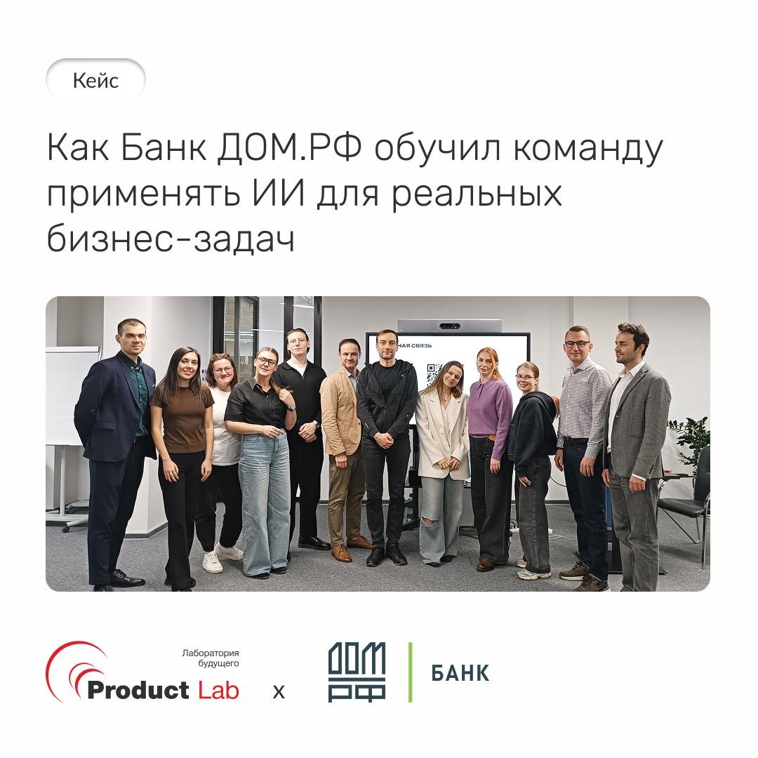 В 2025 году в Банк ДОМ.РФ было принято стратегическое решение – внедрить ИИ-инструменты в повседневные процессы. 🔻 Чтобы это решение реально повлияло на эффективность бизнеса, потребовалось обучить сотрудников прикладному использованию ИИ под реальные задачи: с фокусом на аналитику, сопровождение клиентов и автоматизацию. Именно с этим запросом руководство банка обратилось к нам в Product Lab. Какие результаты получила команда — читайте в новой статье в блоге Product Lab! 👉 Читать статью 📌 Обучаем команды работе с ИИ под задачи бизнеса ИИ-инструменты могут сэкономить десятки часов, упростить аналитику, ускорить документооборот и помочь в принятии решений. Но без практики и адаптации под задачи бизнеса — они не работают. Мы в Product Lab закрываем этот разрыв. 🔻Курс «Нейросети для работы с продуктом» 🔻Корпоративное обучение AI: индивидуальная программа для вашего бизнеса