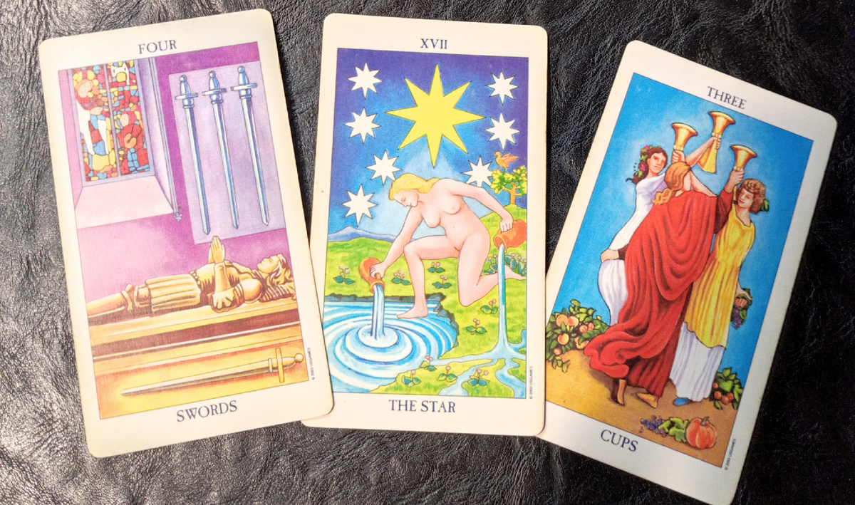 Здравствуйте! Бывает так, когда в отношениях мы наступаем а одни и те же грабли. Бывает что прошлое не пускает настоящее и не дает формировать будущее. Бывает, что прошлое очень похоже на настоящее. Мы можем спросить у карт, в чем тут смысл, причина и что с этим делать. Итак, мой сегодняшний вопрос картам: Как прошлые отношения влияют на мои нынешние отношения с Васей? Берем полную колоду РУ. Схема такая: Четверка Мечей - прошлое, уроки бывших, завершенных отношений Эта карта символизирует период вынужденной паузы, рефлексии и внутреннего исцеления. Чему учили меня прошлые отношения и эти премудрости сейчас оказывают влияние на отношения с Васей - они меня могли научить и хорошему, и плохому. И продуктивному, и деструктивному. Не считаю, что Четверка мечей карта "плохая", среди ее уроков отмечу умение остановиться для того, чтобы осмыслить происходящее, умение в тишине залечивать раны, проживать обиды. Еще она про сознательный отказ от импульсивных действий, когда ты не бежишь от боли,