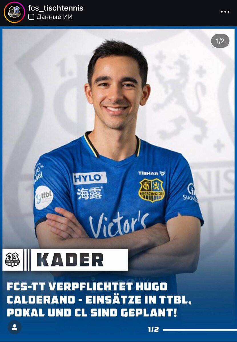 😱 Слухи подтвердились! Третья ракетка мира Хуго Калдерано подписал полноценный контракт с Саарбрюккеном на следующий сезон!!! Проводя нынешний сезон на условиях WTT без клубных игр бразилец реже стал радовать первоклассной игрой и теперь решил вернуться обратно в Германию! Заявлено, что он будет участвовать во всех трёх турнирах - Бундеслиге, Кубке Германии и Лиги чемпионов. Саарбрюккен похоже собрался стать реальной доминирующей силой и гнаться за количеством титулов Боруссии Дюссельдорф. Вы просто представьте состав в ЛЧ - Фан Чжендон, Морегард и Калдерано. Можно не выходить на матч! Бонусом вчера была новость о подписании двух испанцев. Альваро Роблес, как и Хуго, раньше бился за Оксенхаузен и тоже переходит в Саарбрюкеен после годовой паузы. Серебряный призёр чемпионата мира в мужской паре заменит в этом важном разряде для Бундеслиги Седрика Мейснера. Про второго впервые слышу, даже в 250 мира не входит. Видимо напросился в спарринг-партнеры на подхвате. UPD из Саарбрюккена