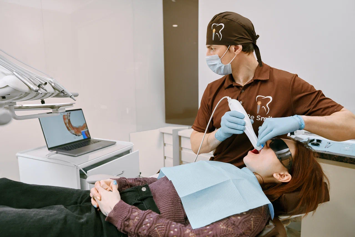 - Осмотр и диагностика. Мы делаем снимки, при необходимости - КТ. Оцениваем, насколько живы корни, каково состояние костной ткани, дёсен.