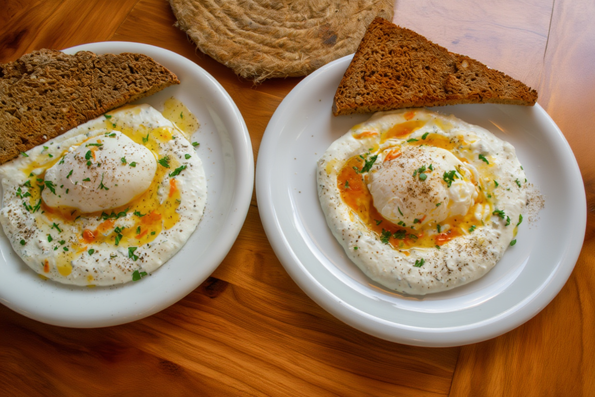 Чылбыр: турецкое утро на белой тарелке Ингредиенты на 2 порции: Приготовление: В небольшой миске смешиваем йогурт комнатной температуры, мелко порубленный чеснок и щепотку соли. Разделяем на две миски для подачи. Разбиваем яйца в мелкое сито. Белок уходит вниз, желток остаётся целым. Перекладываем яйца в отдельные мисочки для удобства варки. Добавляем уксус в кипящую воду — он помогает белку собраться вокруг желтка. Ложкой создаём водоворот и выливаем яйцо в центр. Белок обволакивает желток, образуя цветок. Через 3 минуты яйцо готово: жидкое внутри, нежное снаружи. Готовим 2–3 минуты. Готовое яйцо перекладываем на тарелку или на бумажное полотенце и повторяем ту же процедуру со вторым яйцом. Займёмся соусом из оливкового масла. В небольшой сковороде на среднем огне разогреваем оливковое масло и хлопья перца, даём им немного настояться. Яйца пашот раскладываем по мискам с йогуртом и поливаем подогретым маслом. Это блюдо можно подавать с любым хлебом или несладкими круассанами.