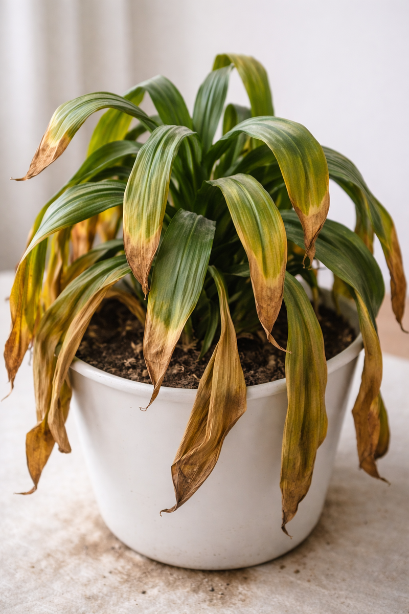 Если листья вянут, а грунт при этом влажный, проблема почти никогда не в нехватке воды. Это тревожный сигнал, что корни не работают нормально. Ниже — чёткий разбор причин и правильных действий. Что происходит: