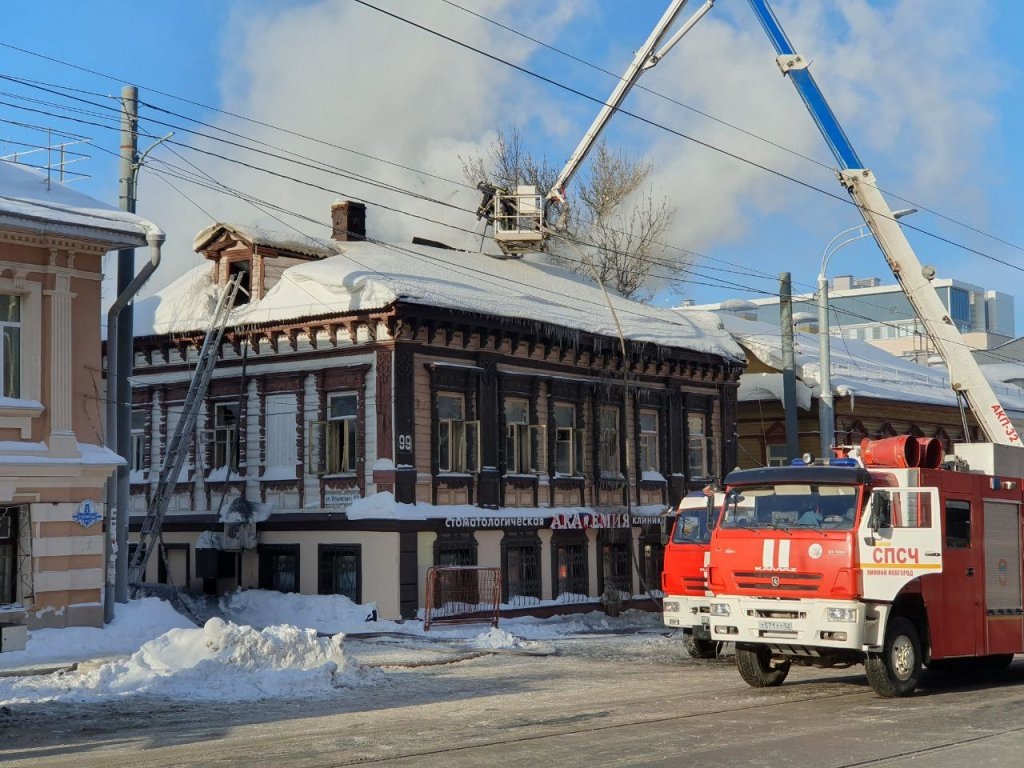 Опубликованы фото тушения пожара в старинном доме на Ильинской