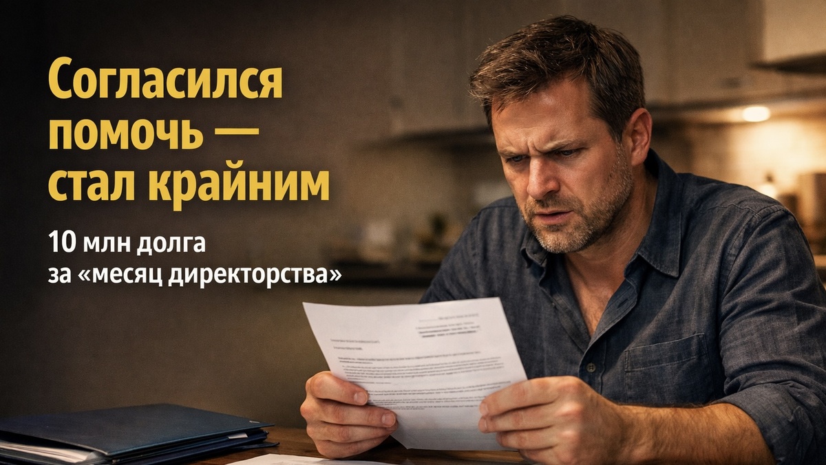 Знакомый попросил его временно стать директором компании, чтобы поставить фирму на учёт по НДС. Сам учредитель в этот момент находился в другом городе, сроки поджимали, решение выглядело простым.