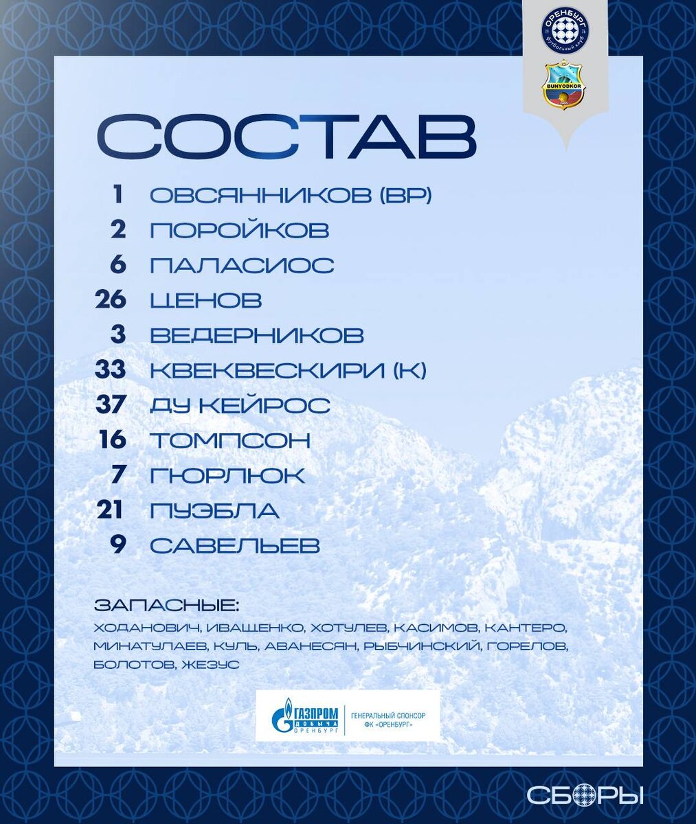 Овсянников в воротах, Паласиос и Ценов в центре обороны, Квеквескири капитан.