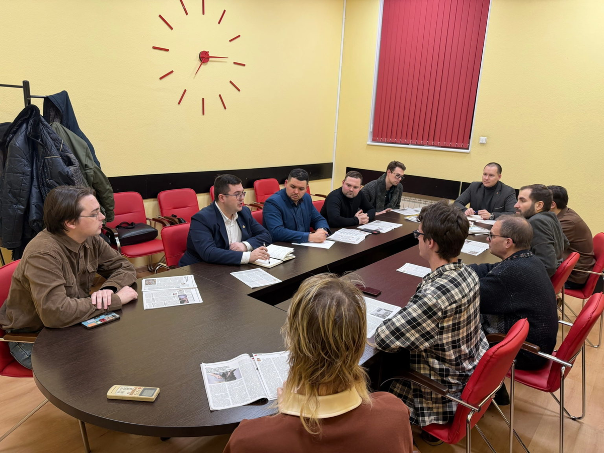 Состоялось первое в 2026 году заседание редколлегии всероссийской общественно-политической газеты «Рабочая», освещающей вопросы рабочего движения, профсоюзной борьбы и трудового законодательства. Вёл заседание и.о. главного редактора газеты Егор Михайлов. В заседании приняли участие второй секретарь горкома партии Андрей Беляков, публицист Владимир Соловейчик, руководитель пресс-службы горкома КПРФ Александр Рогожкин, члены редколлегии. Собравшиеся ознакомились с отзывами читателей относительно ноябрьского выпуска газеты и подвели итоги работы над ним. Затем состоялось обсуждение содержания предстоящего номера. «Будет интересно, остро и по делу!», — уверены в редакции газеты. С предыдущим номером газеты «Рабочая», которая вышла тиражом в 20 тыс. экземпляров, можно ознакомиться на наших ресурсах. Свои вопросы и пожелания по газете направляйте по адресу: 192007, Лиговский проспект, д. 207б. или на ящик gazeta_rabochaya@mail.ru.