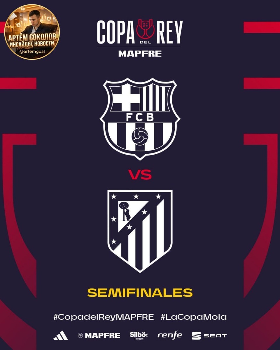 **🇪🇸**** ОФИЦИАЛЬНО: **🇪🇸х🇪🇸 «Барселона» сыграет против «Атлетико» в полуфинале Кубка Испании!