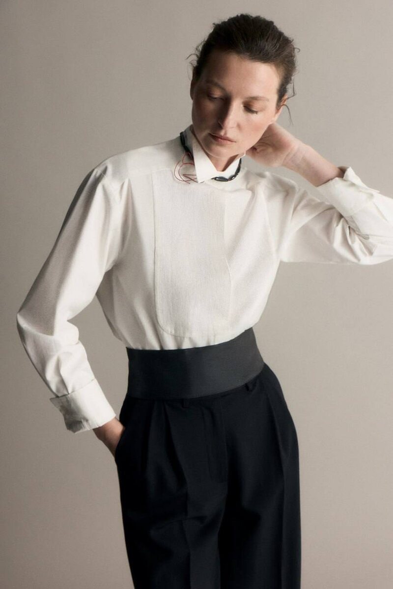 Классная идея от Present&Simple, упакованная в капсулу The Shirt Club. Сорочки как основа женского гардероба, под разный стиль и образы. Базовые - уже бестселлеры бренда. К ним добавились модели с интересными деталями. Сразу скажу, что рубашка с фрачным воротником в этом сезоне - хит. Благодаря коллаборации Charvet и Bottega Veneta. Еще один декор из мужского костюма бренд перенес на рубашки: на одной из моделей можно заменить имитацию паше, нагрудного платка. Ну и сложно в этом году обойти стороной азиатский стиль. В капсуле сорочка с застежками панкоу и воротником, отсылающим к кимоно.