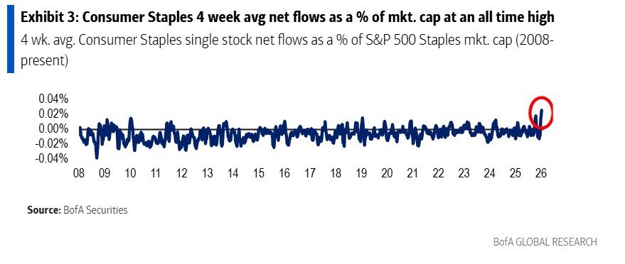 Мы уже отмечали интересный факт того, что притоки в сектор потребтоваров первой необходимости достигли рекорда [картинку прилагаю