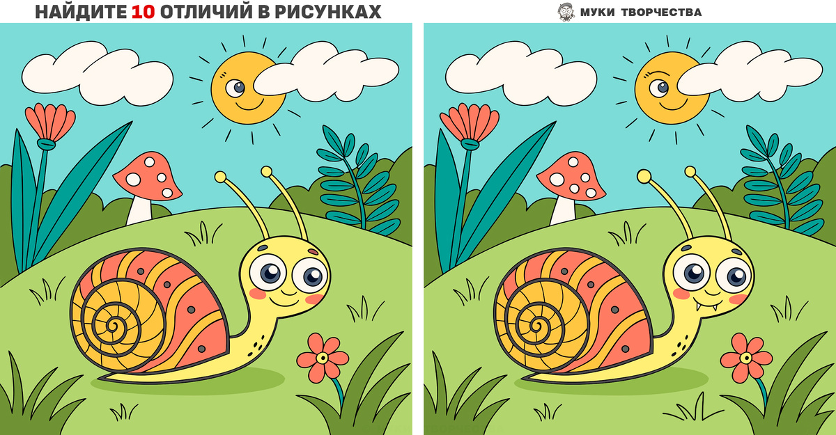 Ваша внимательность на высоком уровне, если найдёте все 10 отличий на картинке с голодной улиткой