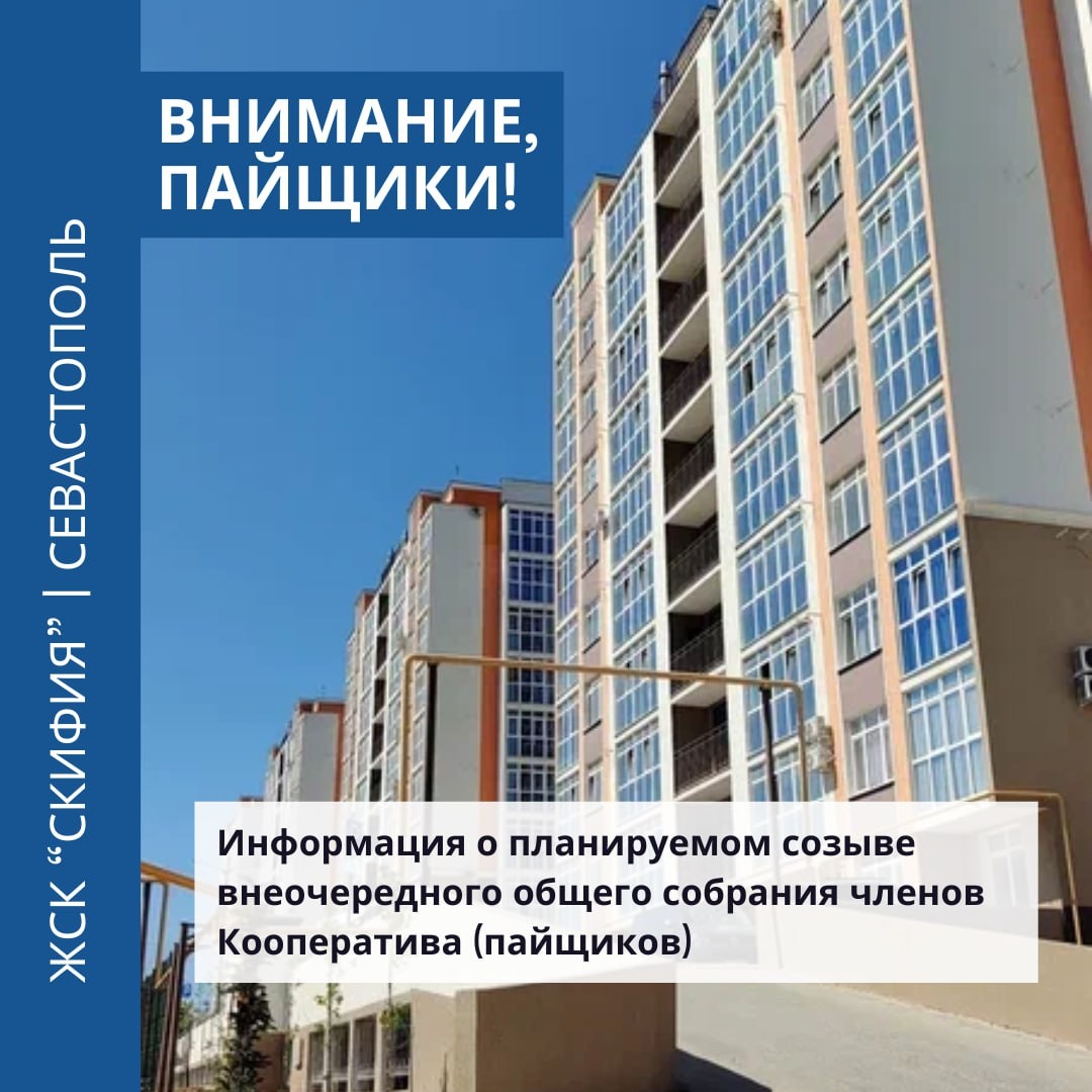 Жилищно-строительный кооператив «Скифия» доводит до сведения членов Кооператива, что по инициативе Председателя Правления Кооператива