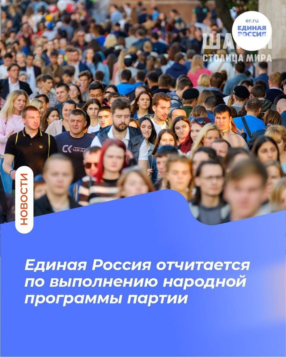 Партия проведет по всей стране форумы с участием общественников, экспертов в различных отраслях, жителей регионов. На них Единая Россия представит ключевые результаты своей работы. Участники мероприятий сформируют предложения в новую народную программу, с которой Единая Россия пойдёт на выборы-2026. Отчетная кампания стартует 5 февраля — с Челябинска. Главная задача партийцев – выйти к населению с конкретными примерами того, что было сделано. Народная программа партии позволила запустить обновление школьной инфраструктуры, социальную догазификацию, благоустраивать общественные пространства, сохранять имеющиеся и вводить новые меры соцподдержки, развивать экономику страны и преодолевать санкции. Помогать приблизить Победу. Шарья – столица мира Крупнейшее городское СМИ Источник: Открыть