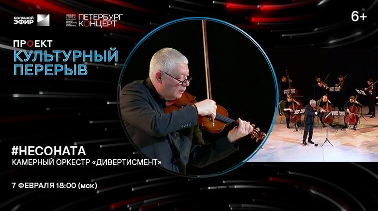 ». Вас ждет концерт с хештегом «Несоната» камерного оркестра «Дивертисмент», в котором прозвучат два сочинения Дмитрия Шостаковича, исполнение которых приурочено к 120-летию со дня рождения композитора. Без сомнения, в концерте #Несоната камерного оркестра «Дивертисмент» всё будет звучать (sonare). Только нужно настроиться на проникновенный монолог автора и содержательную беседу с самим собой. Солисты, лауреаты международных конкурсов: Лидия Коваленко (альт), Илья Иофф (скрипка) Художественный руководитель: заслуженный артист России Илья Иофф Прямой эфир телеканала доступен обладателям спутникового телевидения «Триколор», а также всем желающим по ссылке: vk.cc/cU7vtv