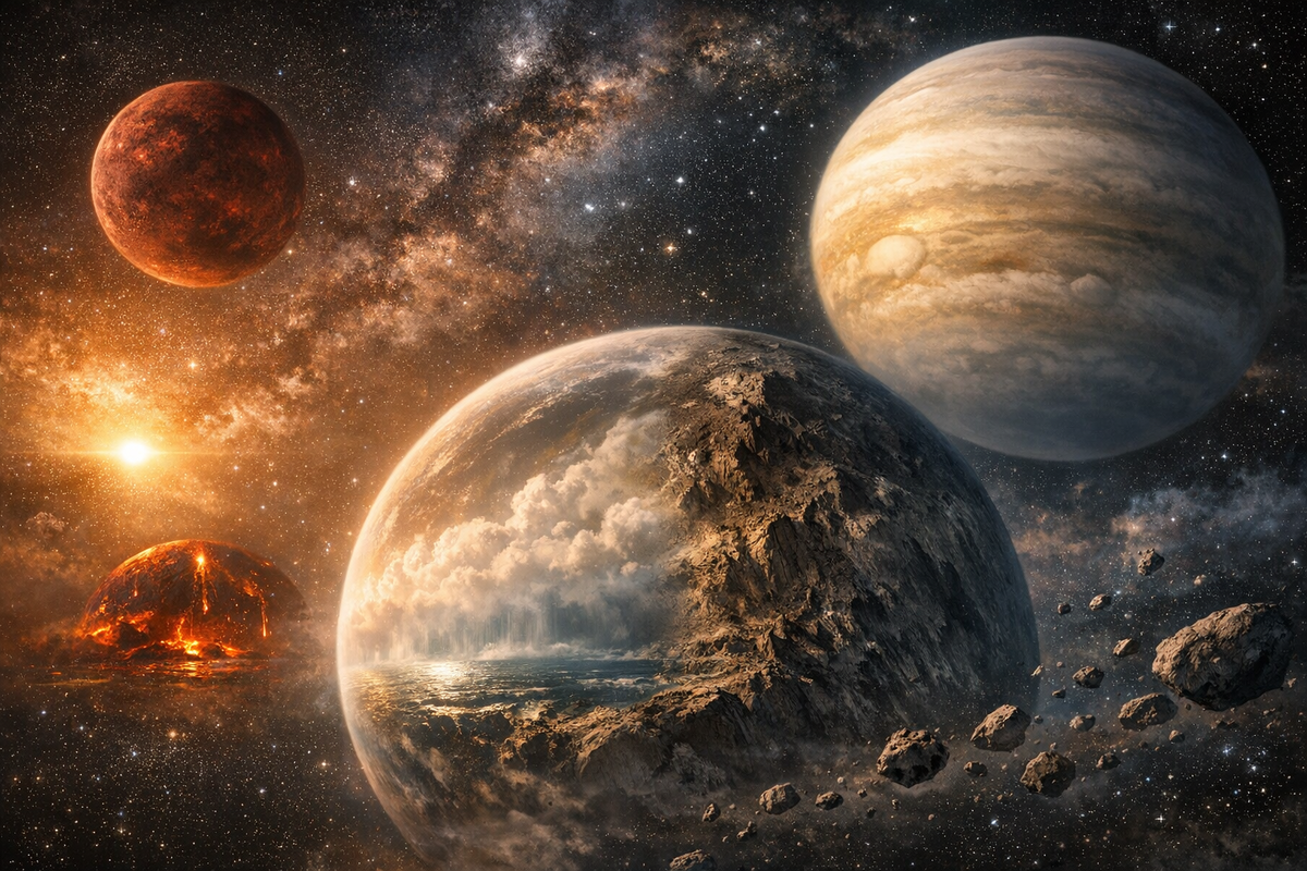 В 1990-х годах, астрономы надеялись, что новые миры будут в целом напоминать планеты Солнечной системы — просто в других масштабах и условиях. Однако спустя три десятилетия стало ясно: Вселенная куда более изобретательна. Сегодня в каталогах тысяч экзопланет есть объекты, которые не вписываются ни в одну привычную категорию. Их сложно классифицировать не только из-за нехватки данных, но и потому, что сами теоретические модели оказываются недостаточными. Классическая планетология опирается на сравнительно простые типы: каменистые планеты, газовые гиганты, ледяные миры. Но экзопланеты существуют в условиях, которых нет в нашей системе: экстремальные температуры, аномальные плотности, необычные орбиты и составы атмосфер. Более того, большинство данных мы получаем косвенно — по транзитам, колебаниям звезды или спектрам атмосферы. Это оставляет простор для интерпретаций, где один и тот же объект может выглядеть как «мини-Нептун», «супер-Земля» или нечто промежуточное. Одна из самых проблем