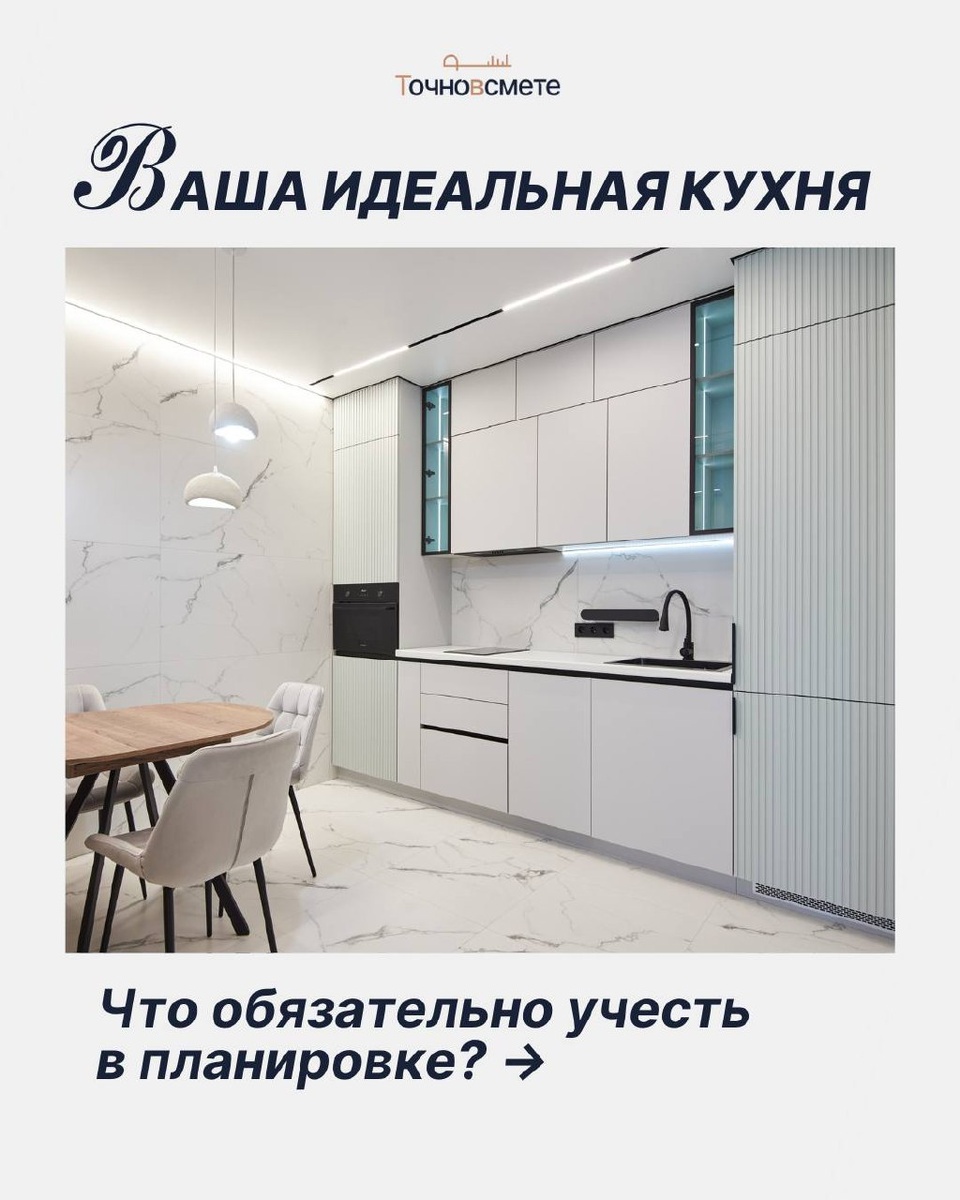 🙏 Хватит мечтать, пора делать. А мы поможем) Мы собрали 5 базовых правил, которые закладываются ещё на этапе дизайн-проекта и напрямую влияют на комфорт. Сохраните, если планируете ремонт. Пригодится точно 🤍 А если хотите, чтобы кухня была не только красивой, но и удобной именно для вас, мы рассчитываем смету и помогаем продумать всё до начала работ! 👎 – ставьте, если выбрали свой вариант планировки и уже думаете, как это реализовать