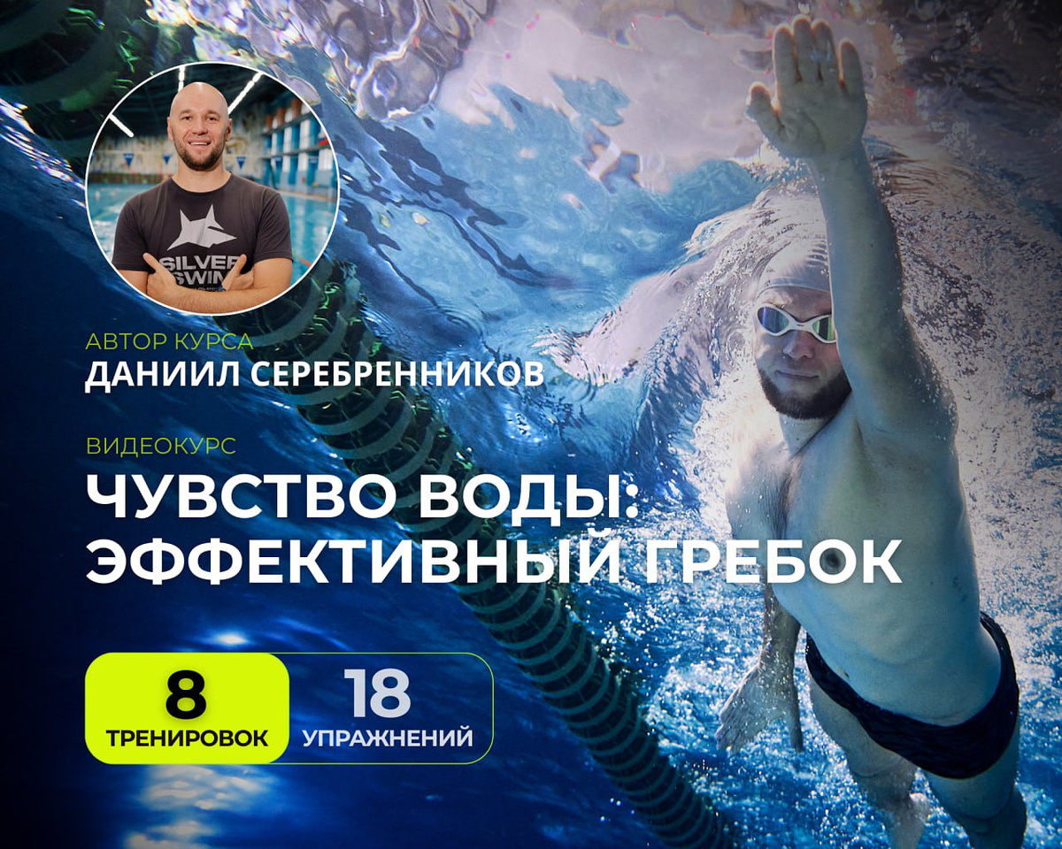 Чувство воды! Как понять, что не хватает этого чувства? - Гребок кажется "пустым", рука проваливается и проскальзывает в воде. - Пульс зашкаливает, частота гребков растет, а дистанция за цикл и скорость остаются на месте. - После тренировки вы чувствуете перенапряжение в плечевых суставах, так как нагрузка распределяется неравномерно. Чувство воды - это не врожденный талант, а навык нейромышечной координации, который можно и нужно тренировать через специфическую последовательность упражнений. Сегодня вышел наш новый видео-курс "Чувство воды: эффективный гребок"! В курсе: - 8 тренировок с четким планом: последовательный переход от простых ощущений к сложной координации. - 18 упражнений из нашей авторской методики Silver Swim. К концу курса вы научитесь находить опору в воде и превращать каждый гребок в мощное продвижение вперед! Мы подготовили два уровня программы: - Базовый - для тех, кто плывет от 500 м кролем - Продвинутый -