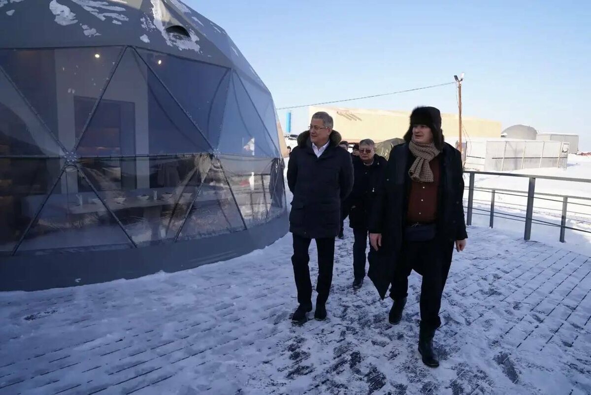Посмотрели, как идёт работа, обсудили с инвестором, чем ещё республика может помочь. Запустить комплекс планируют в этом году. Уверен, что он будет востребован у наших жителей и гостей Башкортостана из других регионов". Фото: ТГ-канал Р. Хабирова.
