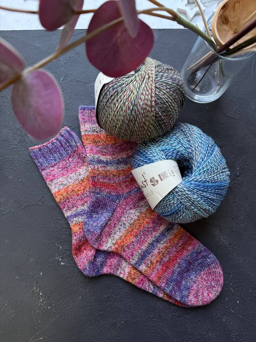 🥴 Забыли показать носки, которые связала Света из Landlust sockenwolle. Интересно раскладывается рисунок простым движением спиц. Также выкладываются 2 цвета: сине-голубой и хаки.