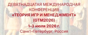 1–3 июля 2026 года Санкт-Петербургский государственный университет (факультет прикладной математики - процессов управления совместно с Высшей школой менеджмента СПбГУ) и Российское отделение Международного общества динамических игр проводят XIX Международную конференцию «Теория игр и менеджмент» (GTM2026). Подробнее на сайте РМП: https://risk-practice.ru/news/gtm2026-prostranstvo-dlya-obmena-ideyami-v-sfere-teorii-igr/