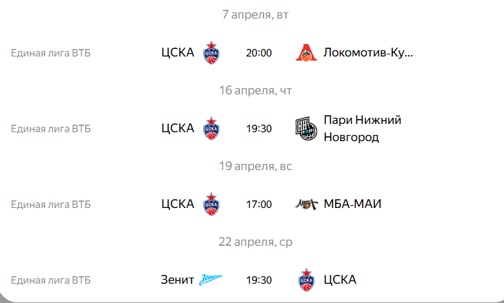 Баскетбол — это не просто спорт, это целая культура, атмосфера и эмоции, которые невозможно передать словами. Если вы хотите окунуться в мир баскетбола, почувствовать энергию трибун и увидеть игру лучших игроков, то матчи баскетбольного клуба ЦСКА — это именно то, что вам нужно. В этом тексте мы расскажем о том, как можно получить промокоды на матчи ЦСКА, какие цены на билеты, где проходят игры и почему стоит посетить матчи в сезоне 2026 года. По промокоду PROMO0826 скидка 400 рублей при переходе по ссылке на Яндекс.Афишу на заказы от 3000 рублей без лимита скидки (для ВСЕХ пользователей) Цены на билеты ЦСКА разные. Зависят от силы соперника, значимости турнира и дальности расположения мест от площадки. Обычно даже на топовые матчи можно приобрести билет меньше 1000 рублей. Календарь ближайших матчей команды выглядит вот так Но как известно самое интересное будет ближе к концу весны, когда начнется плей-офф Единой Лиги ВТБ. Посещение домашних матчей — это здорово, однако настоящая ст