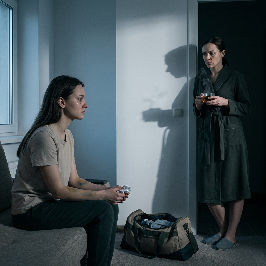 — Покажи, — сказала она. Всего одно слово, лишённое интонации, плоское, как лезвие. Во дворе, в колодце между серыми хрущёвками, кто-то кричал ребёнку: «Саша, домой! Суп остывает!» Этот обыденный, тёплый зов прозвучал как насмешка из параллельной, здоровой вселенной. Я медленно, будто под гипнозом, оттянула растянутый рукав. Кожа на сгибе локтя была мертвенно-бледной, и на этом фоне цвел сине-лиловый венок, отпечаток чьих-то пальцев, сложившийся в чудовищный букет. Это не был просто синяк. Это была карта насилия, топография моего унижения, выставленная на всеобщее обозрение. Я ждала ужаса на её лице. Сострадания. Пожалуйста, хоть капли жалости. Но её черты не дрогнули. Они не застыли — они стали глубже, резче, будто вся её сущность, вся её воля сконцентрировалась в точку невероятной плотности. В её глазах, всегда таких ясных и безжалостных, что-то вспыхнуло и тут же погасло, похороненное под слоем вечной мерзлоты. Во мне всё оборвалось, и я ощутила ту самую пустоту, которая наступает после падения, когда ты уже ударился, но боль ещё не пришла. Только предчувствие.