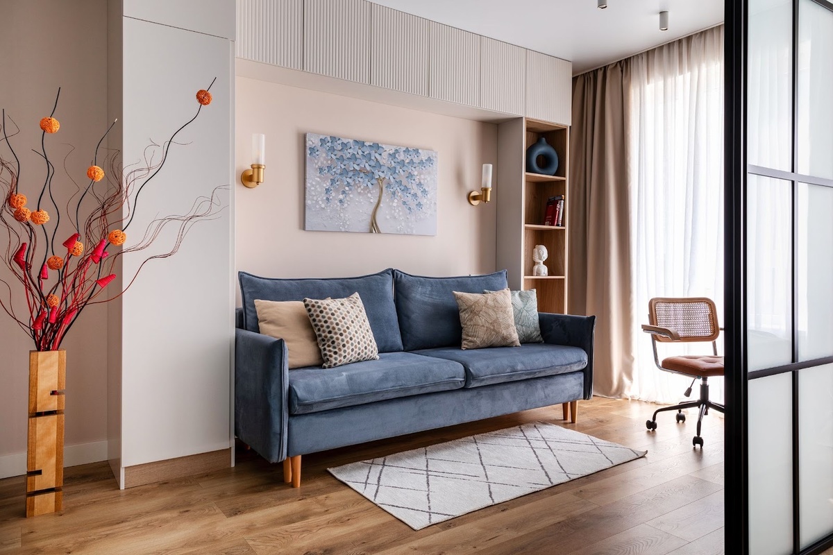 Студия 35 кв.м: замиксовали сканди с классикой и зонировали без перепланировки