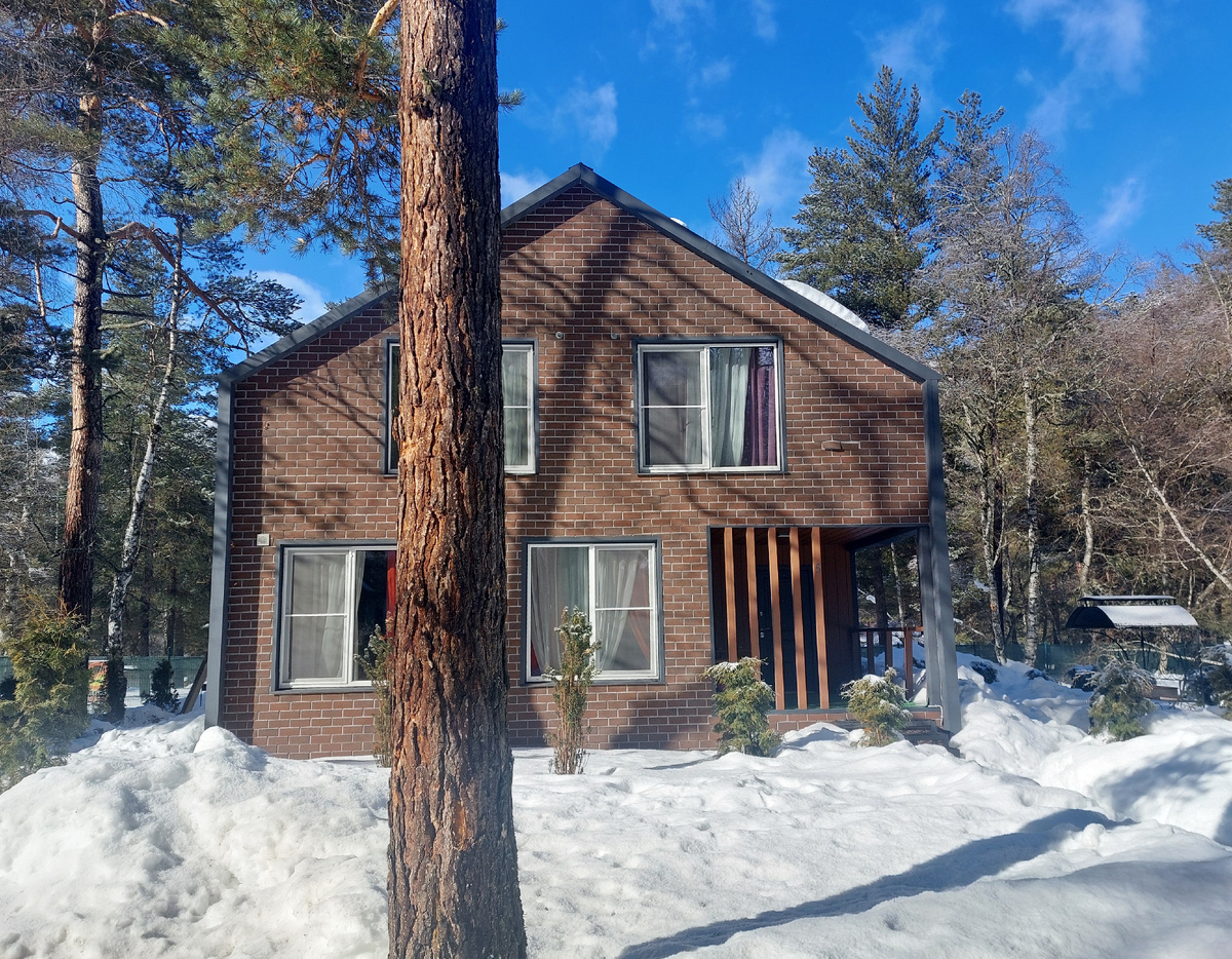 Есть дома как двухэтажные, так и совсем небольшие. Большинство домов построены из дерева. А из чего еще строить там, где леса. Все эти дома принадлежат разным туристическим базам. А их здесь очень много.