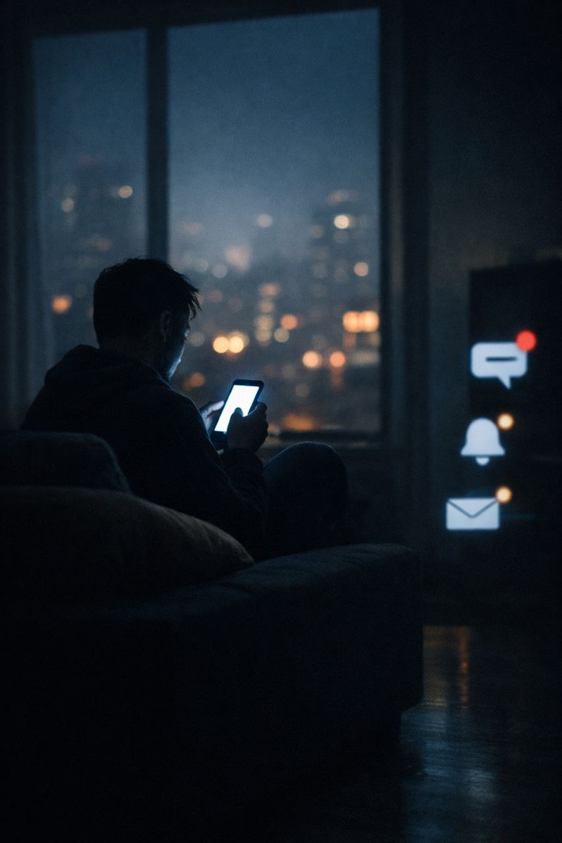Средний человек смотрит в экран примерно семь часов в день. Это не привычка, это среда. Треть бодрствования проходит в прямоугольнике, который светится, когда вокруг темно, и не гаснет, когда вокруг шумно. Если подняться на один уровень выше бытовых жалоб, видно простое: экран стал главным местом, где живет внимание. Мы едим одной рукой, другой листаем. Мы стоим в очереди и не стоим в очереди, потому что внутри уже другое место. На улице, дома, в городе, в комнате ожидания, в любой паузе экран закрывает паузу собой. Вечером это видно особенно ясно. В одном подъезде сотни окон, и в каждом свое синее свечение. Люди физически рядом, но каждый внутри своей ленты. Разговоры становятся короче, взгляды реже, тишина плотнее. Не из-за плохих характеров, а потому что общая реальность больше не общая. Она рассыпана на личные экраны. Экран делает две вещи одновременно. Он приносит пользу и забирает время. В нем карта, связь, работа, музыка, новости, фотографии. И там же бесконечная лента, кото
