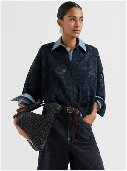 Цветочным узором с эффектом кружева связаны несколько моделей из коллекции Брунелло Кучинелли весна-лето 2026г. Обзор моделей из этой коллекции можно посмотреть здесь: Разбор узора сетки к цветочному узору можно посмотреть здесь: Искренне рада приветствовать всех любительниц вязания на моём канале, посвящённом вязанию спицами. Меня зовут Татьяна. На канале разбираю брендовые вязаные изделия и делюсь схемами узоров к ним, публикую обзоры новинок в мире вязаной моды и мастер-классы. Подписывайтесь, включайте уведомления и делитесь своим мнением и успехами в комментариях. Ваши лайки и комментарии — это моя мотивация )) Более подробно, по сравнению с другими моделями, цветочный узор можно рассмотреть на футболке Dazzling Water Lillies. Футболка Dazzling Water Lillies. Состав пряжи оригинала: лен - 94%, хлопок - 6%. Футболка связана машинным способом, и я хотела понять, можно ли связать подобный узор на спицах, и как он будет выглядеть. По центру переда и спинки футболки связан большой моти