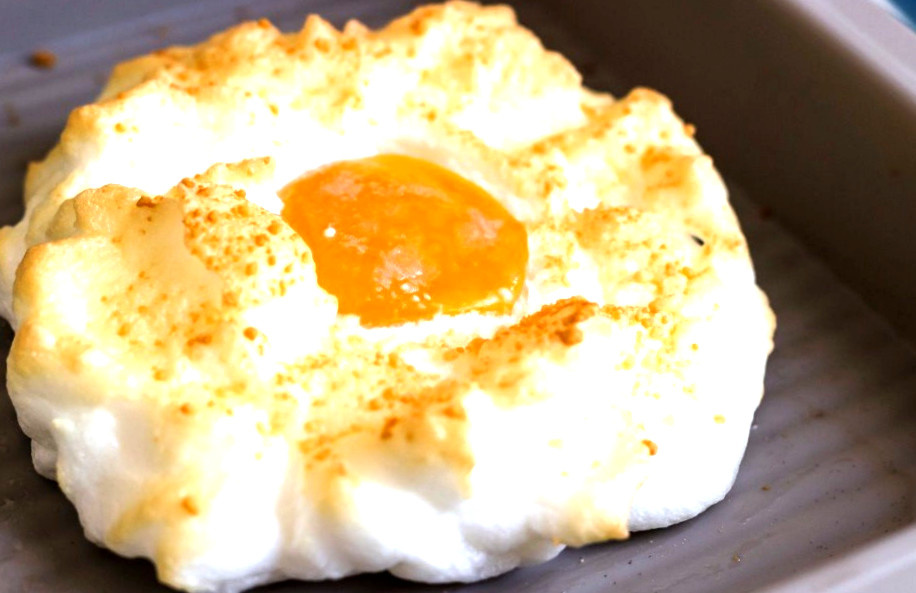 Когда достаю противень из духовки, всегда замираю на секунду. Эти белоснежные облака с солнечными желтками посередине выглядят фантастически! Посыпаю зеленым луком, подаю с тостами и авокадо. Идеально!