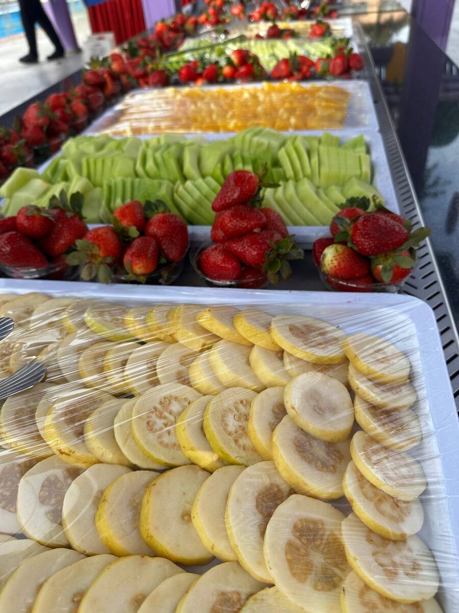 Окунитесь в атмосферу витаминного безумия! 🍓🍍 Понедельник — день фруктовый: как проходит самый сочный фестиваль в Ali Baba Palace Если вы думали, что понедельник — день тяжелый, значит, вы просто не проводили его в отеле Ali Baba Palace! Когда стрелки часов приближаются к 14:30, эпицентр веселья перемещается к бассейну, в зону бара Manhattan. Именно здесь начинается настоящий витаминный взрыв — легендарный Фруктовый фестиваль. 🍓 Тропический рай на тарелке Январь в Египте — это сезон невероятных вкусов. Представьте: длинные столы, которые буквально ломятся от ярких красок. Здесь и алая, тающая во рту клубника, и медовая дыня, и экзотическая гуава с её неповторимым ароматом. Любители классики оценят сочные апельсины, спелые бананы и рубиновые зерна граната, которые так и брызжут соком. А дополняют это изобилие освежающие соки — идеальное спасение от послеполуденного зноя. 🎉 Атмосфера бесконечного праздника Но фестиваль в «Али Бабе» — это не только про еду. Это шоу, от которого загор