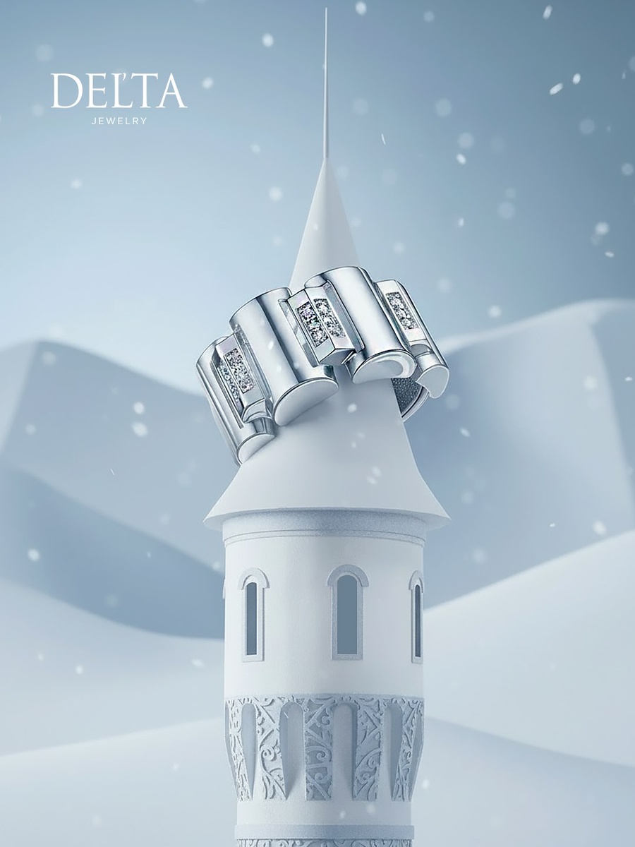 Глянцевое серебряное кольцо с ослепительными фианитами притягивает взгляд так же, как заснеженная башня в центре площади. Пусть этой зимой у вас будет своё сияние — в настроении и в украшениях✨ ____ DELTA - создай свой стиль Кольцо арт. С1107326 #DELTA #Кольцо #УкрашенияDELTA #ЗимнийГород #СоздайСвойСтиль