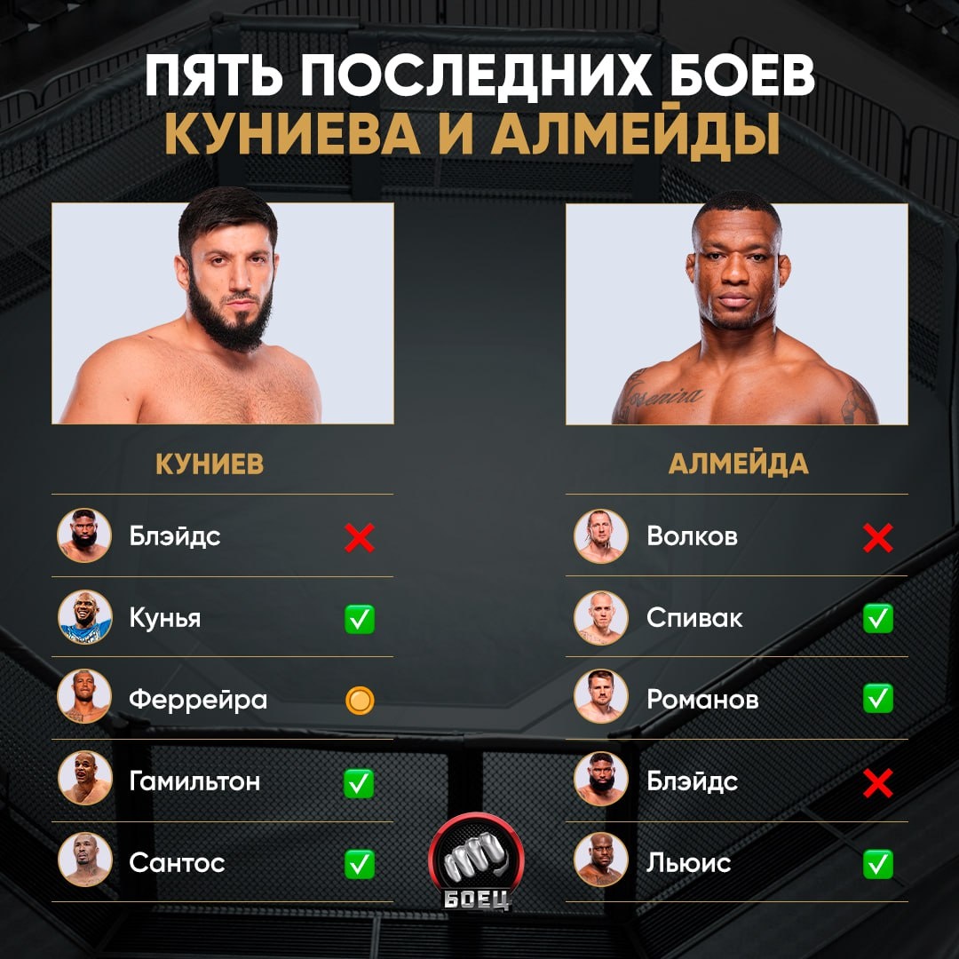 Куниев и Алмейда подходят к очной встрече с одинаковым числом побед в последних боях