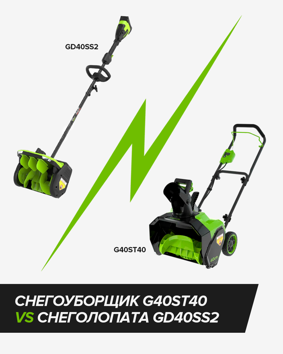 Два аккумуляторных снегоуборщика Greenworks 40V: для разных сценариев зимней уборки. Greenworks G40ST40 (2603607) Подойдёт тем, кому важно быстро очищать открытые площади: ↔️ Ширина захвата 40 см ⬆️ Колёса 18 см и масса без АКБ 12,8 кг — устойчивая работа на ровных поверхностях 🚪 Регулировка направления выброса 180° и дефлектор для настройки дальности ⚡️ Щёточный двигатель — практичное решение для регулярной уборки Greenworks GD40SS2 (2603107) Оптимален для узких и сложных зон: ↔️ Ширина захвата 30 см ✅ Масса без АКБ 6,9 кг — высокая манёвренность и контроль 🚪 Регулировка направления выброса: вправо/влево на 30 и управление дальностью через обороты шнека ⚡️ Бесщёточный двигатель DigiPro™ и две LED-фары Обе модели работают на платформе Greenworks 40V, осталось только выбрать формат уборки, который подходит именно вам! Приобрести можно в онлайн и офлайн-магазинах: Ozon, Wildberries, Яндекс Маркет