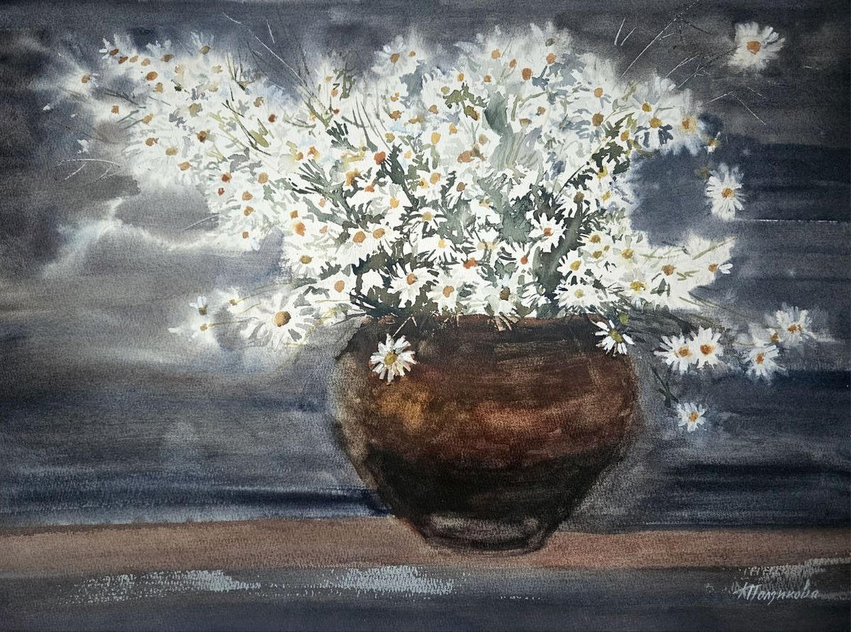 ? 🍵 🐇 Рада вам сообщить, что по результатам опроса я нарисую картину с цветами, которые набрали наибольшее количество голосов 🪷 Цветы – это маленькие солнышки нашей души. Они всегда поднимают настроение и дарят тепло даже в самые холодные дни! Особенно я обожаю ромашечки 💕 Мои любимые цветы дарят мне ощущение лета, детства и свободны. Картина выполнена акварельными красками и уже готова подарить вам капельку радости и вдохновения, а также согреть под яркими лучиками моих любимых цветов! 😍 «Ромашковое облако», акварель, 38х54 см. #акварель@ksupolzikova_art